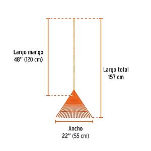 ESCOBA PLÁSTICA PARA JARDÍN, RÍGIDA, 22 DIENTES, MANGO 48'
