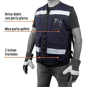 CHALECO BRIGADISTA CON CINTAS REFLEJANTES, AZUL MARINO